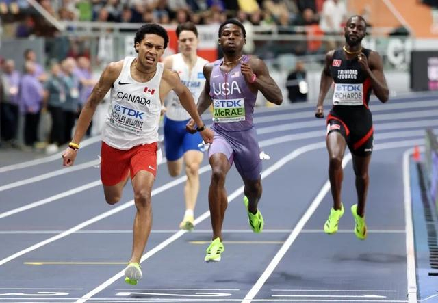 男子400米决赛,加拿大名将克里斯托弗·莫拉莱斯·威廉姆斯(Christopher Morales Williams)跑出44.76秒强势夺冠,打破杰里姆·理查兹(Jereem Richards)在2022年贝尔格莱德室内世锦赛创造的45.00秒赛会纪录。