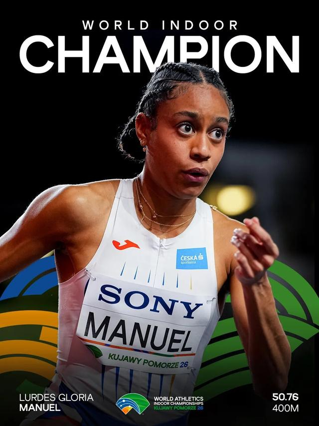 女子400米赛场同样涌现出属于年轻人的惊喜。20岁的卢尔德斯·格洛丽亚·曼努埃尔(Lurdes Gloria Manuel)击败一众高手,以50.76秒、刷新个人最好成绩的方式拿下职业生涯首个室内世锦赛冠军。这种在大赛舞台上突然完成跃升的时刻,往往最能体现年轻选手的爆发力。
